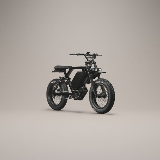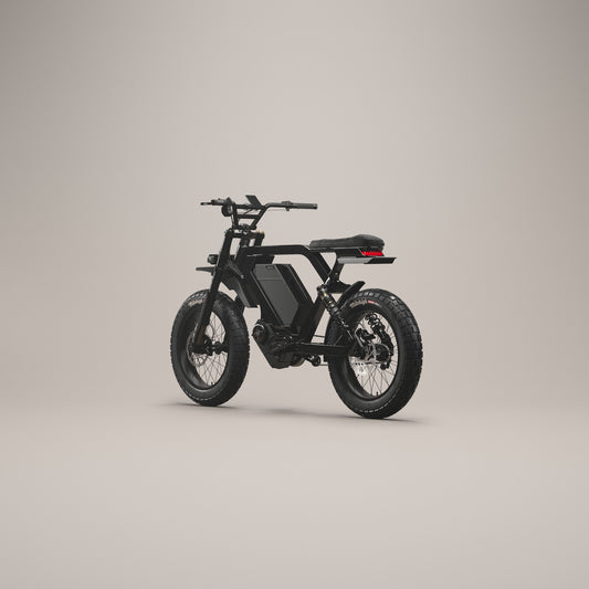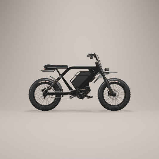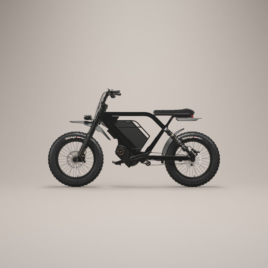 The Ristretto® 512 First Edition motorbike is driven by a powerful mid-drive motor capable of up to 4500 watts of peak power. The controller offers two modes of operation: Street Legal Mode, which reaches a maximum speed of 28 mph, and Race Mode, which can reach a top speed of 40 mph. (It is important to note that Race Mode is intended for use on private property only).