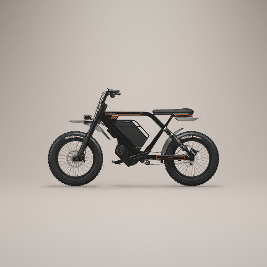 The Ristretto® 512 motorbike is driven by a powerful mid-drive motor capable of up to 4500 watts of peak power. The controller offers two modes of operation: Street Legal Mode, which reaches a maximum speed of 28 mph, and Race Mode, which can reach a top speed of 40 mph. (It is important to note that Race Mode is intended for use on private property only).