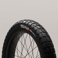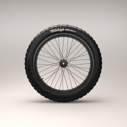 Milehigh's Brick tires merge the best of multiple worlds. These fat tires provide increased stability and momentum along with a larger footprint that provides increased floatation for soft terrain, providing a more comfortable ride.