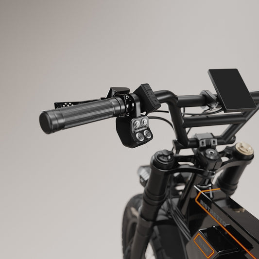 With built-in power cut-off sensors, pulling the high modularity brake levers will not only cut power from the motor, but will also warn nearby drivers by activating the high viz brake light.