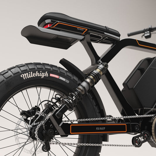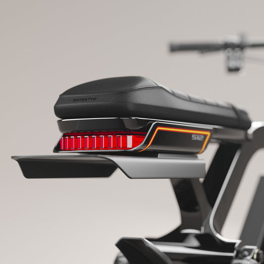 The aluminum spoiler adds durability and seamless integration into the 512 frame. The 512 taillights not only serves its purpose of lighting but also showcase the bike's identity and personality.