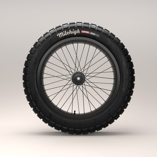 Milehigh's Brick tires merge the best of multiple worlds. These fat tires provide increased stability and momentum along with a larger footprint that provides increased floatation for soft terrain, providing a more comfortable ride.